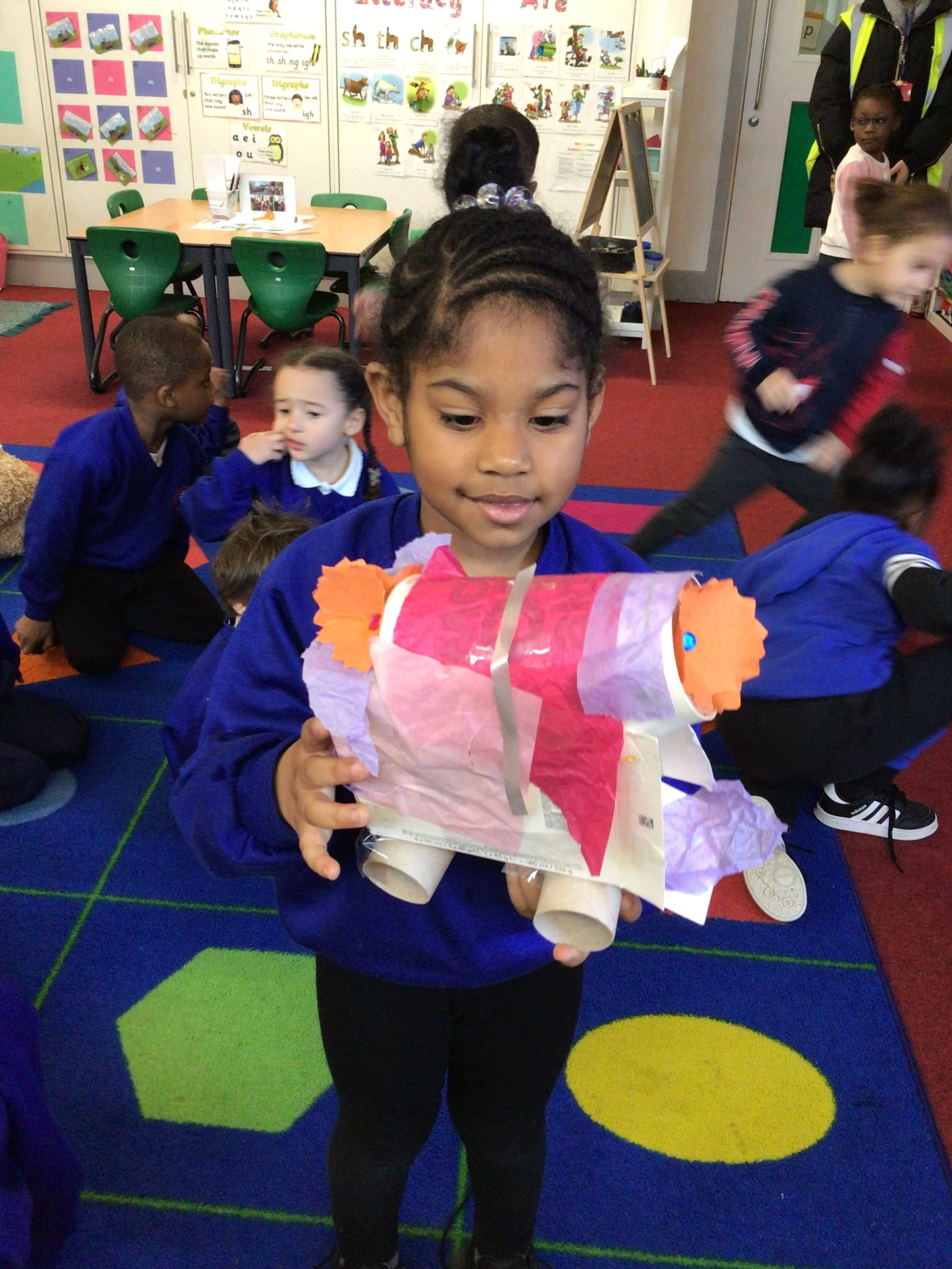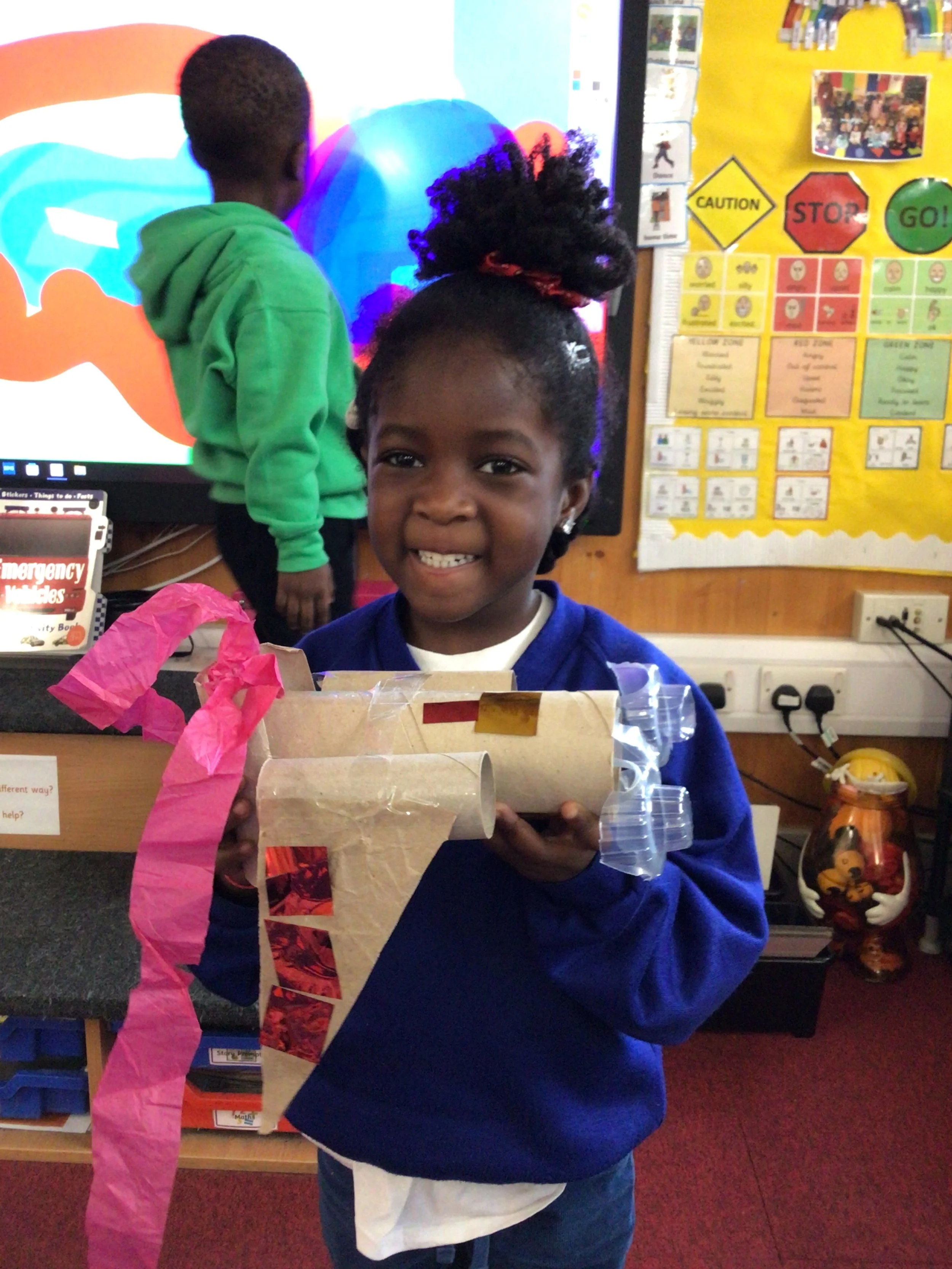 We explored different types as cars, trains, boats. planes bikes and motorcycles. We did this through stories and using shapes and differnt materials to create vehicles. Here are some examples of their creative play and their shared outcomes.