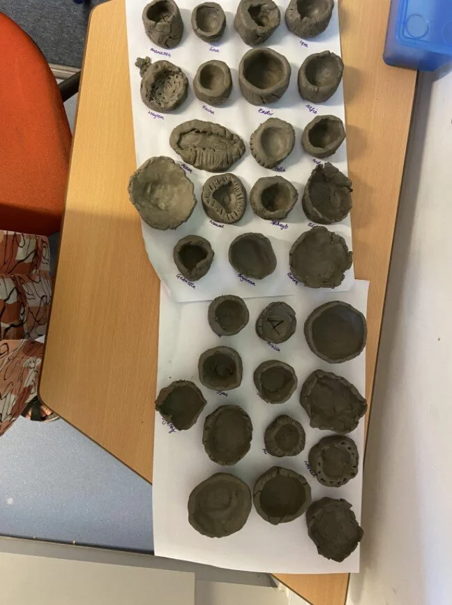 Cherry Class made clay pinch pots to understand how our Stone Age ancestors lived. We learned that everything in the Stone Age had to be created or collected by individuals. Life was tough!